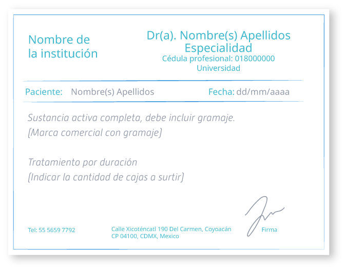 paciente. La elaboración de una receta sigue un esquema definido, por la Secretaría de Salud.
