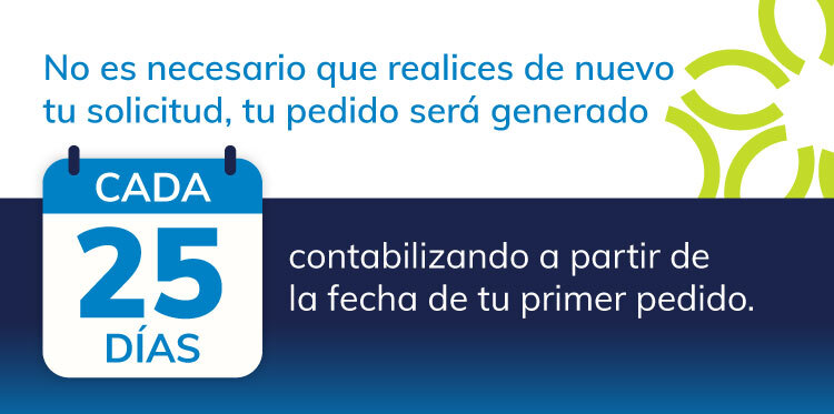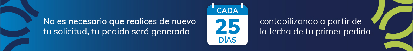Al generar tu pedido, selecciona la opción de suscripción y elige la periodicidad en la cual requieres el medicamento. Al tratarse de una suscripción, estas aceptando que se realice un cargo recurrente según la periodicidad que hayas elegido.